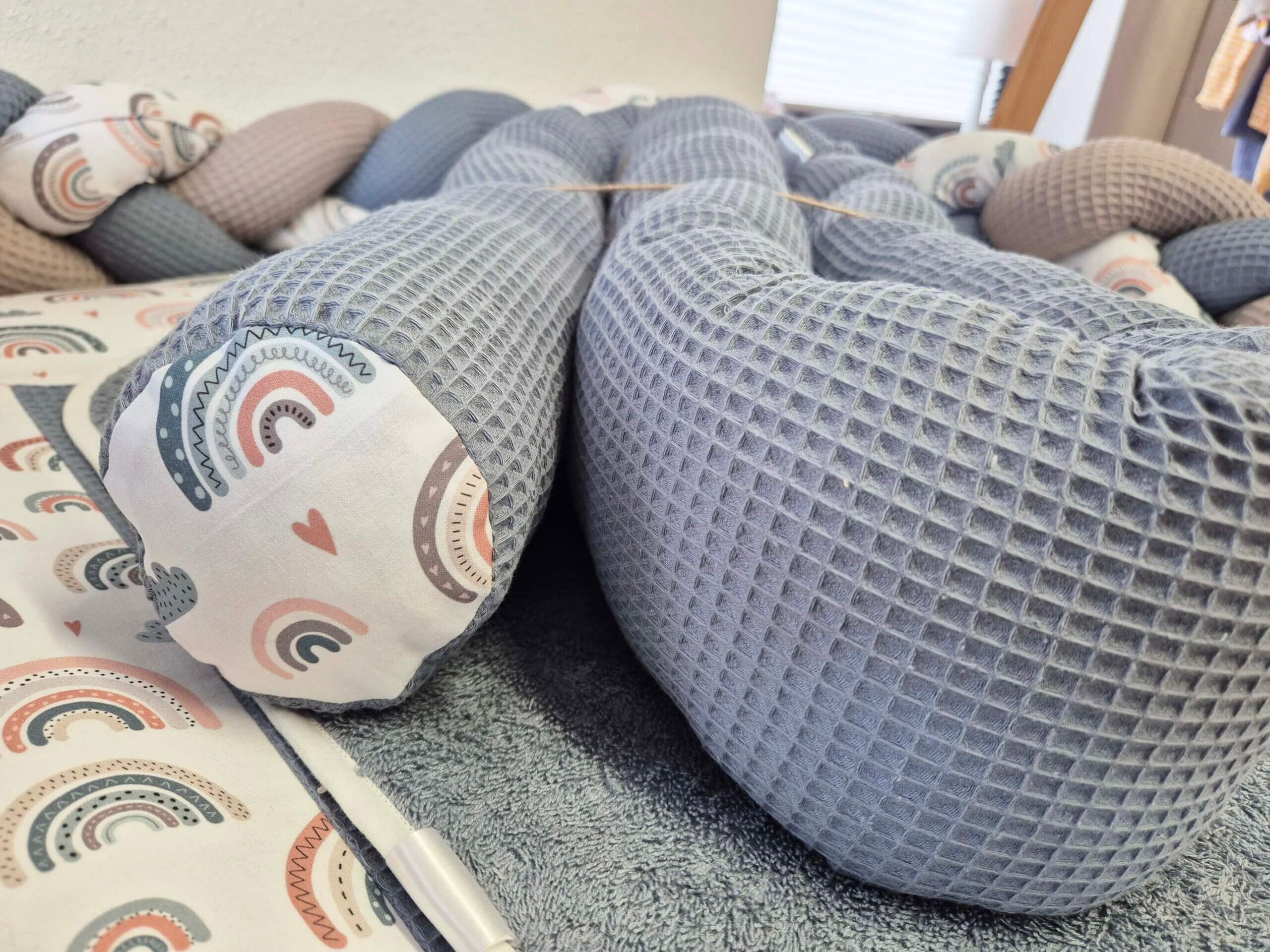 Unsere Bettschlangen gibt es immer passend zu den Wickelauflagenbezügen oder auch in neutralen Unifarben. Sollte euer Wunschdesign nicht dabei sein, so schreibt mir gerne eine Nachricht.