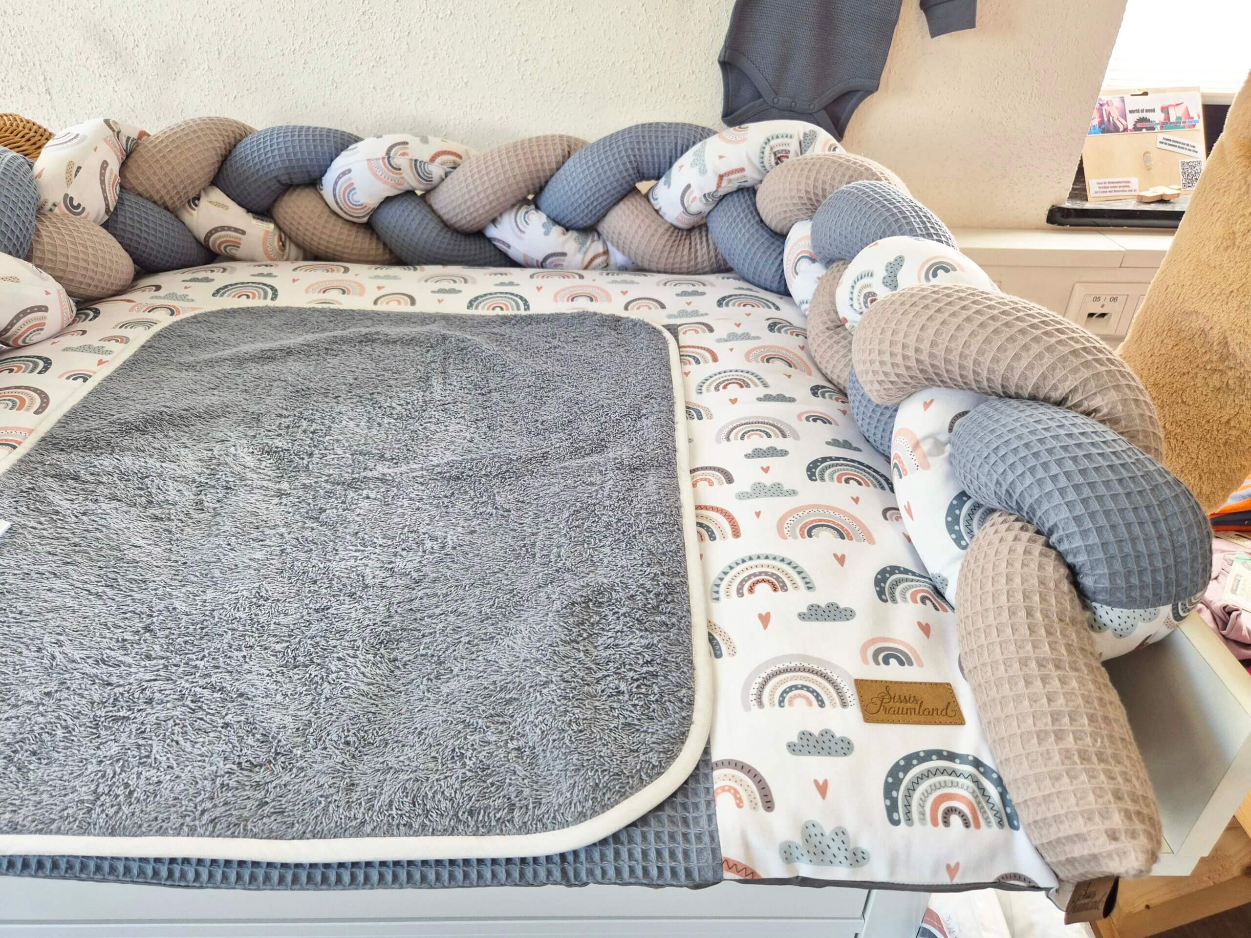 Unsere Bettschlangen gibt es immer passend zu den Wickelauflagenbezügen oder auch in neutralen Unifarben. Sollte euer Wunschdesign nicht dabei sein, so schreibt mir gerne eine Nachricht.